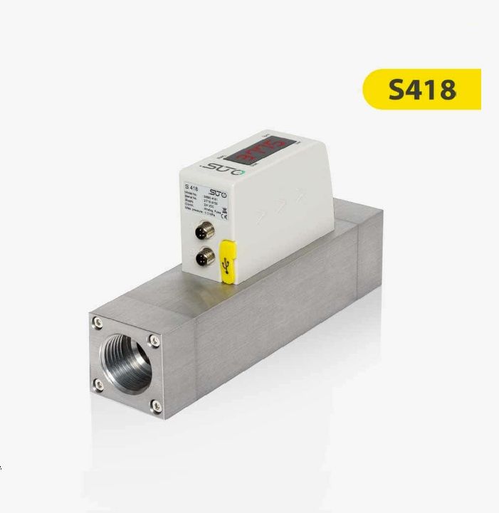 Cảm biến lưu lượng nhỏ gọn S418 cung cấp khả năng giám sát lưu lượng khí nén và khí trực tiếp tại nơi cần thiết. Việc tích hợp liền mạch vào hệ thống khí nén và khí giúp nó trở thành giải pháp đo lưu lượng giá cả phải chăng và dễ lắp đặt.