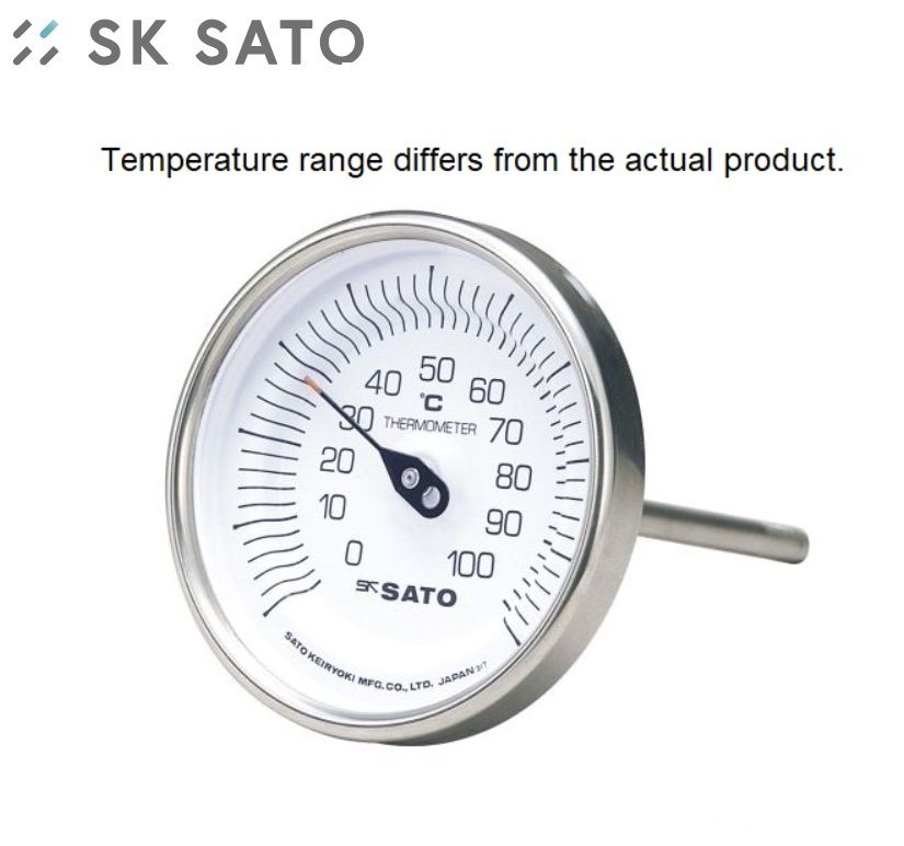 Nhiệt kế lưỡng kim, -30 đến 50°C, thân cảm biến 60 mm Sato là nhiệt kế mặt số lưỡng kim trong vỏ thép không gỉ, với thân cảm biến kéo dài ra phía sau mặt số. Bạn có thể chọn phạm vi nhiệt độ ưa thích của mình từ 4 phạm vi và 4 chiều dài thân cảm biến khác nhau. Mẫu này có phạm vi -30 đến 50°C, thân cảm biến dài 60 mm.